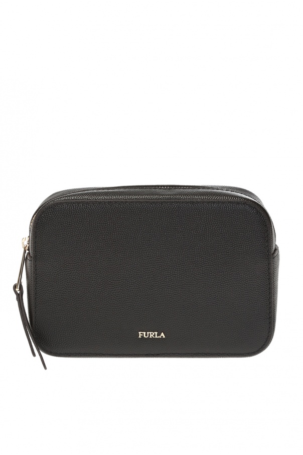Black ‘Babylon’ belt bag from Furla. Made of leather with a texture throughout. Fastened via zip. Features gold-tone metalware with logo on the front, an adjustable waist belt and interior with 1 compartment and 1 slip pocket inside.