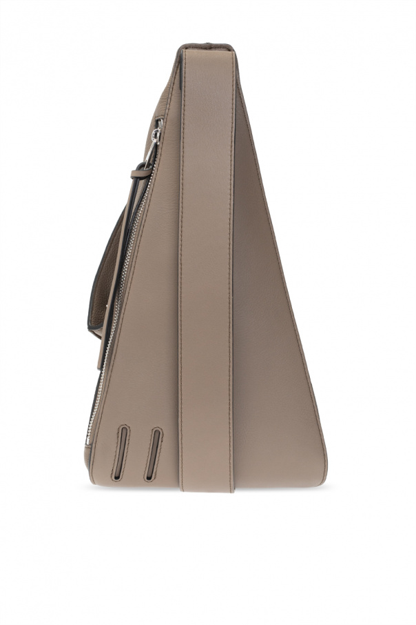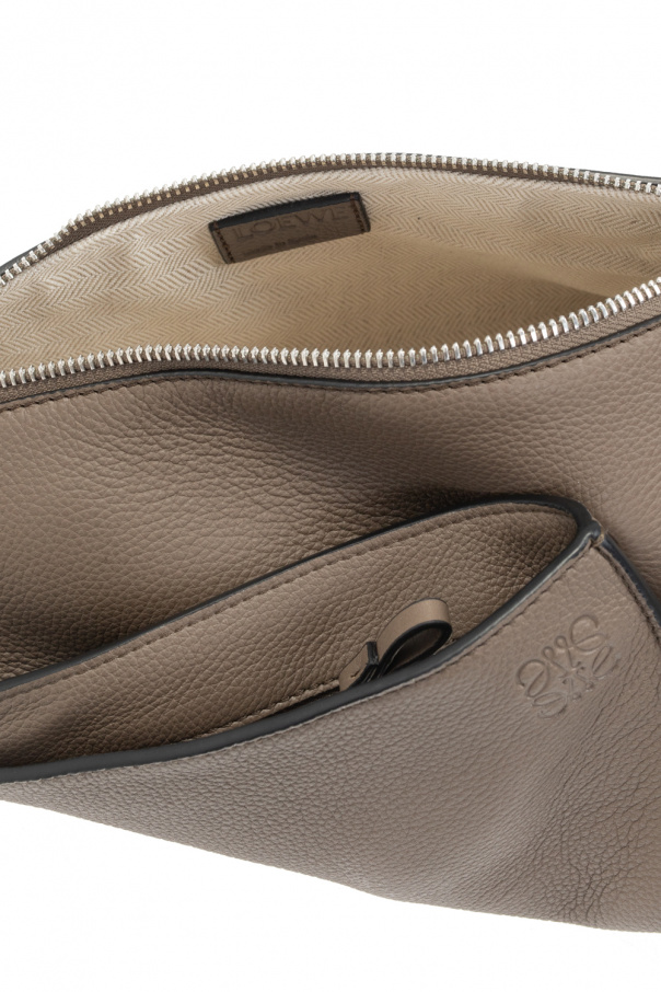 Dark brown ‘Anton Sling’ shoulder bag from Loewe. Crafted from grained calf leather, this design fastens with zips and features an embossed logo, adjustable shoulder strap, two internal compartments and silver-tone metal hardware.