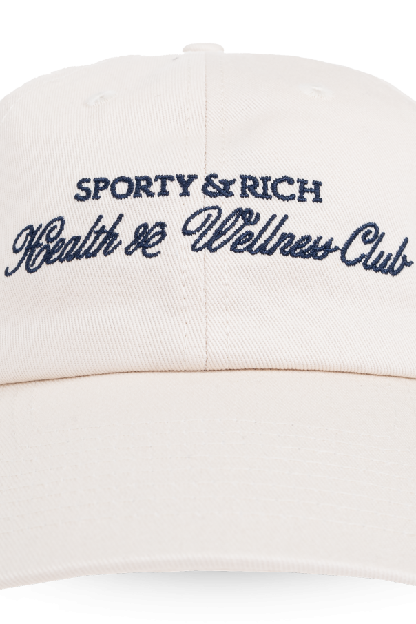 Introducing the quintessence of sophisticated headwear, the Sporty & Rich Health & Wellness Club Cap. Crafted with an eye for timeless elegance, this cream-colored cap is a testament to classic design, harmoniously blended with modern sensibilities. The cap is meticulously fashioned from 100% premium cotton, ensuring both durability and lightweight comfort for its wearer. The front of the cap is adorned with an exquisitely embroidered logo and the words \"SPORTY & RICH Health & Wellness Club,\" set in a striking navy color that contrasts beautifully against the cap\'s cream backdrop. The cap\'s design features a standard rounded visor that offers ample protection from the sun, alongside a rounded crown that typifies the cap style, ensuring a universally flattering fit. Functionality marries style with the inclusion of an adjustable strap with a buckle closure at the rear, allowing for a customizable fit to accommodate various head sizes. Ventilation eyelets are strategically placed around the cap, providing enhanced air circulation on warmer days. Why Purchase This Product? Exclusive Design: Stand out with the unique, embroidered details of the Sporty & Rich brand, making a statement of refined taste. Adjustable Comfort: Enjoy a perfect fit with the cap\'s adjustable strap, ensuring comfort and style go hand-in-hand. Premium Material: Relish the soft, breathable quality of 100% cotton, guaranteeing both comfort and longevity. Practical Elegance: Benefit from the cap\'s functional design, including sun protection and superior ventilation.