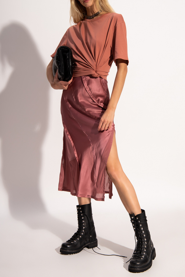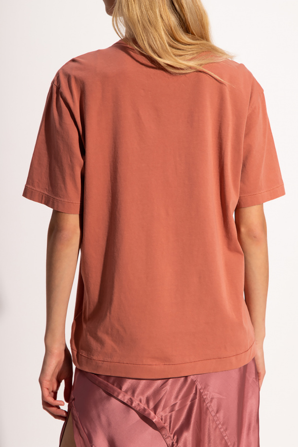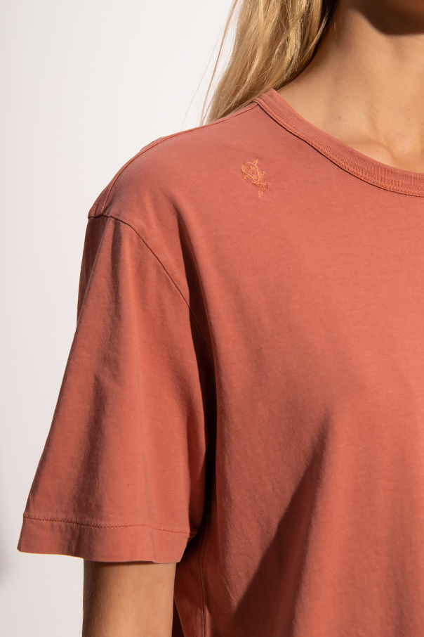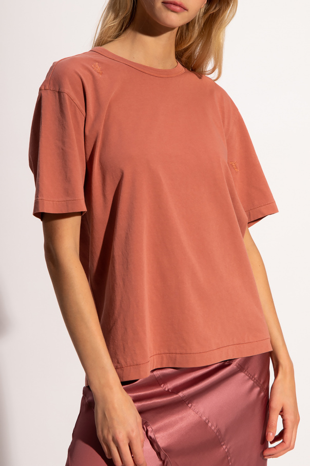 Orange crewneck T-shirt from Diesel. Crafted from cotton, this style showcases short sleeves, an elasticated collar and a logo patch for brand recognition.