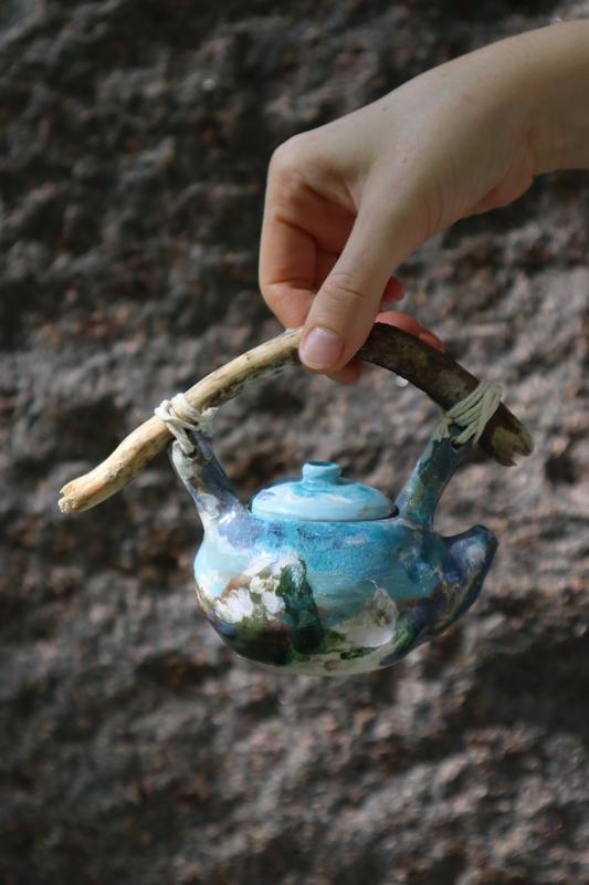 120 мл, выполнен из Славянской глины на Graphite. Раскрашен ангобными красками и глазурями. Дикая сосновая веточка служит ручкой. Сделано с любовью.