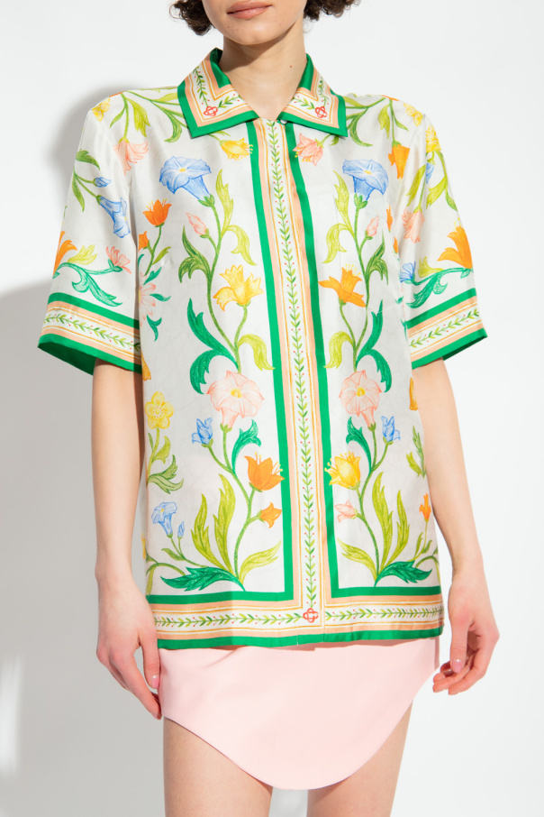 Multicoloured \'L\'arche Fleurie\' shirt from Casablanca. Made of silk, this style showcases a graphic pattern and short sleeves.