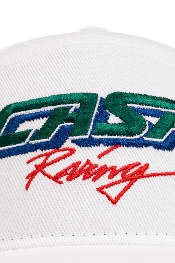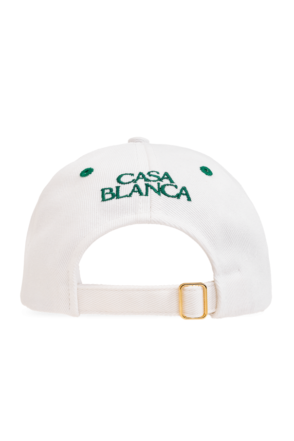 White baseball cap from Casablanca. Made of cotton, this item features a multicolored logo and an adjustable buckle strap at the back.