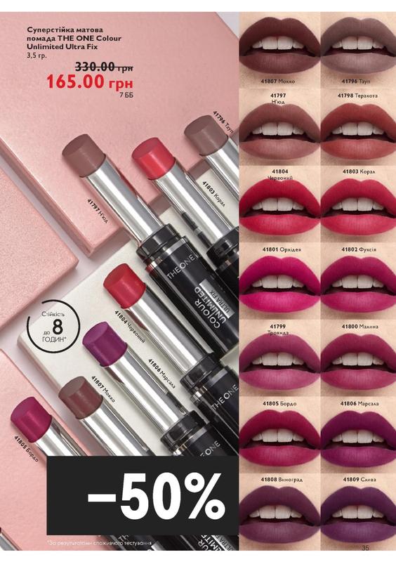● Клінічно доведено: 99% фіксація кольору на губах *;