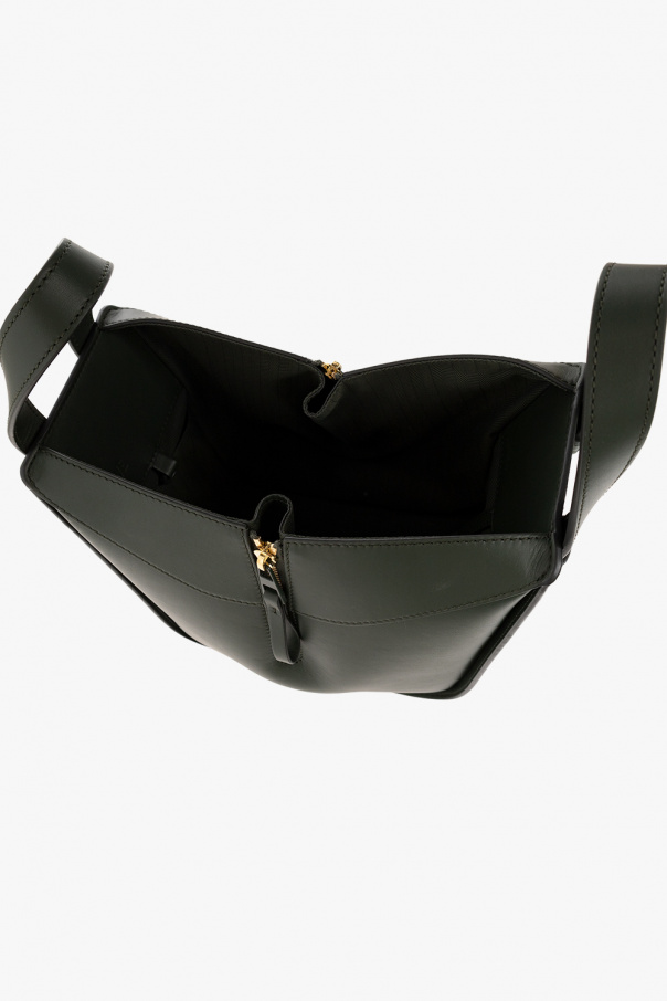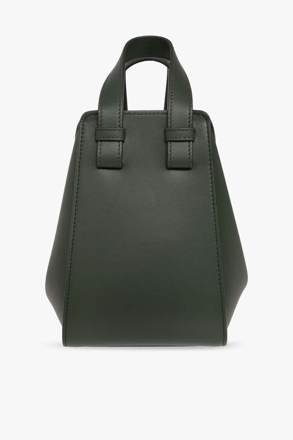 Dark green ‘Hammock’ shoulder bag from Loewe. Made of calf leather, this model is adjusted with zips and complete with an embossed logo, zipped side pocket, two half-round handles, detachable and adjustable shoulder strap, gold-tone metal hardware and one internal compartment with two slip pockets.