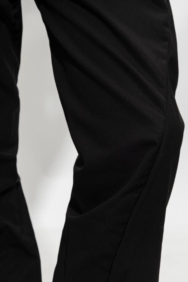 Black trousers from Junya Watanabe Comme des Garcons Eye x Levi\'s. Crafted from cotton, this pair falls with slightly tapered legs and features a zip fly with a button, three pockets on the front and one flapped button pocket accompanied by a logo patch at the back.