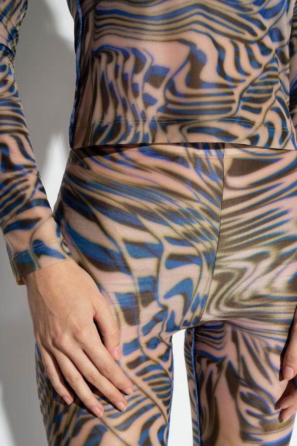 Multicolored ‘T-SIELAU’ top from Diesel. Crafted from shiny Italian lycra, this fitted design is complete with a high neck and long sleeves with an Op-art inspired pattern.