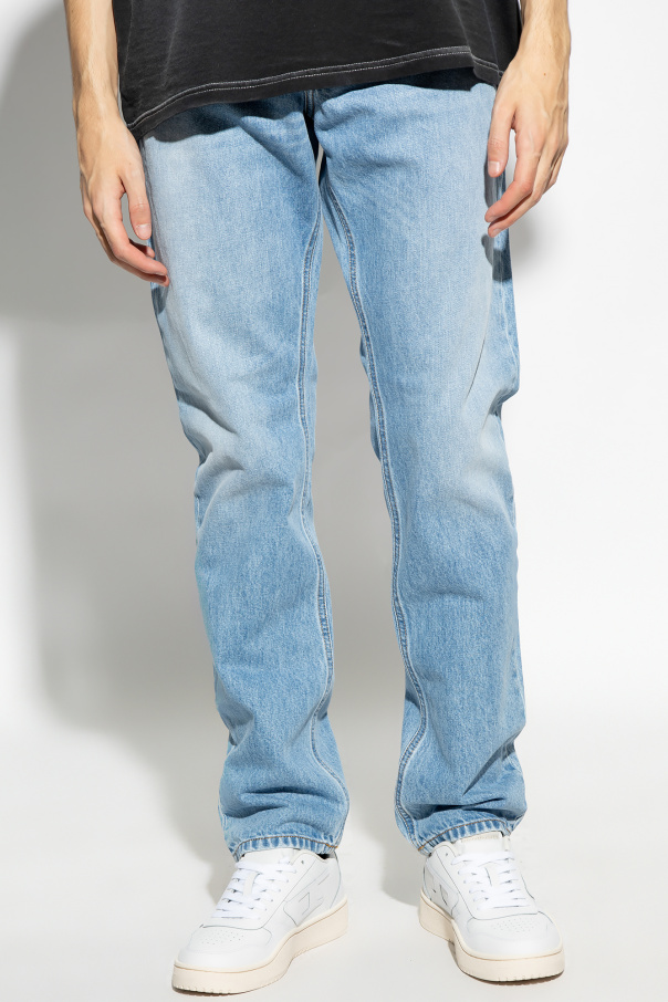 Blue ‘D-SARK L.30’ slim-fit jeans from Diesel. Falling with slightly tapered legs, this pair features button fastenings, classic five pockets and logo patches on the front and back.