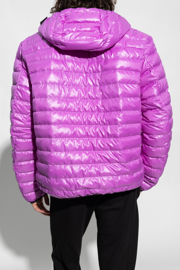 Purple ‘Lauzet’ quilted jacket from Moncler. Crafted from recycled micro ripstop with a glossy finish, this garment features a two-way zip, logo print, logo patch, two front zip pockets, long sleeves and down padding.