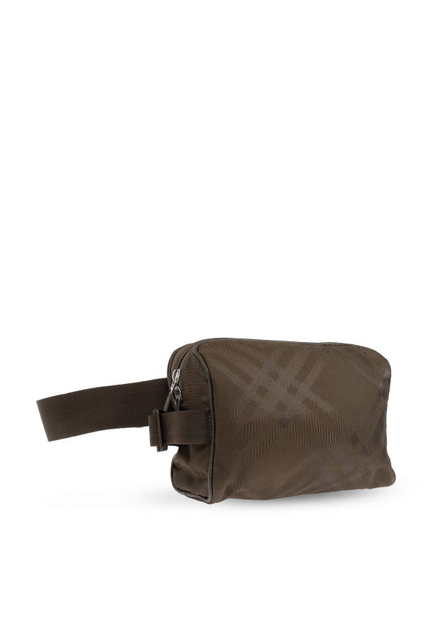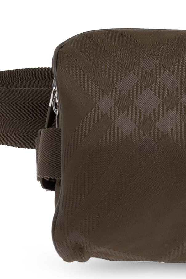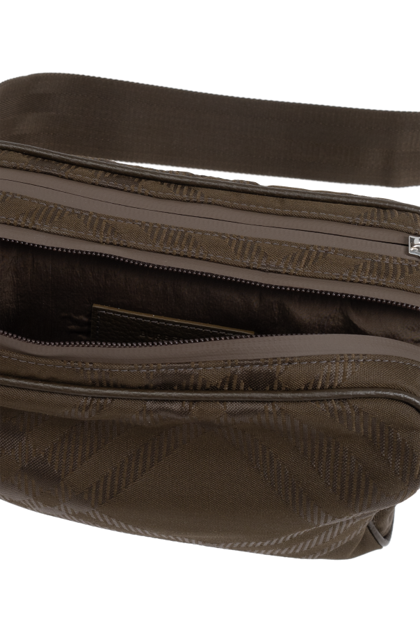 Introducing the Burberry Checked Belt Bag, a harmonious blend of functionality and fashion-forward design. Crafted with meticulous attention to detail, this accessory is a testament to the brand\'s commitment to quality and luxury. The bag\'s rectangular silhouette, softened with gently rounded corners, exudes a modern charm, while the symmetrical check pattern, a signature of Burberry, adds a touch of timeless elegance. The outer layer, a sophisticated mix of polyamide and polyester, boasts a smooth texture that hints at the bag\'s superior craftsmanship. In hues of brown, accented with a distinctive dark green check pattern that shifts under different lighting, this belt bag commands attention. The adjustable strap offers versatile wearability, allowing for comfortable shoulder or waist positioning. Moreover, the robust zipper ensures the security of your essentials, complemented by metal hardware that, while not visible in the images, typically features the engraved Burberry logo, adding a subtle nod to the brand\'s heritage. Inside, the bag reveals a practical layout with two compartments, ensuring your belongings are organized and easily accessible. The dark green color of the interior further accentuates the bag\'s overall aesthetic appeal. Why Purchase This Product? Exemplary craftsmanship and high-quality materials Iconic Burberry check pattern and branding Adjustable strap for versatile styling Secure zipper closure for peace of mind Elegantly designed with practicality in mind