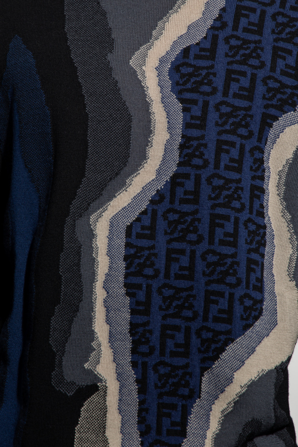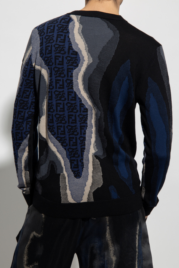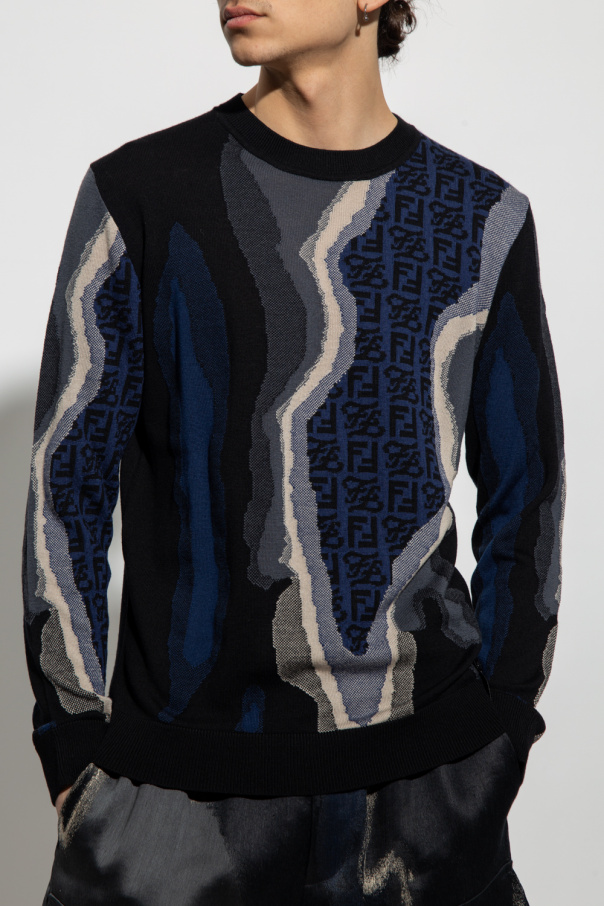 Multicoloured crewneck sweater from Fendi. Crafted from a cotton blend, this style features a classic fit with long sleeves and an embroidered logo.