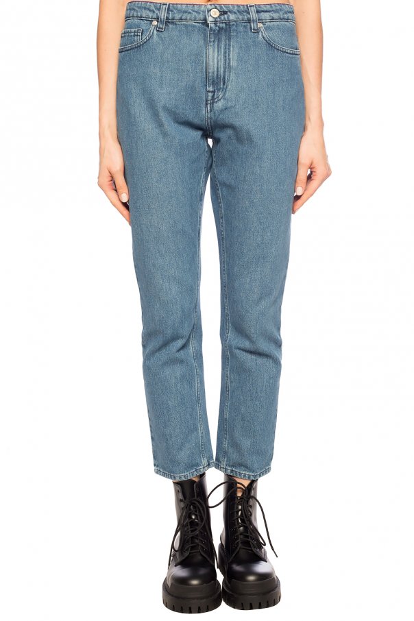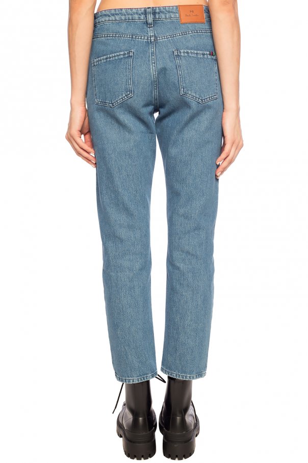 Blue high-waisted jeans from PS Paul Smith featuring zip fly and top button fastening and 5-pocket design.