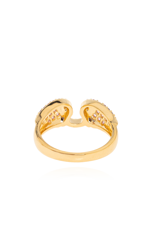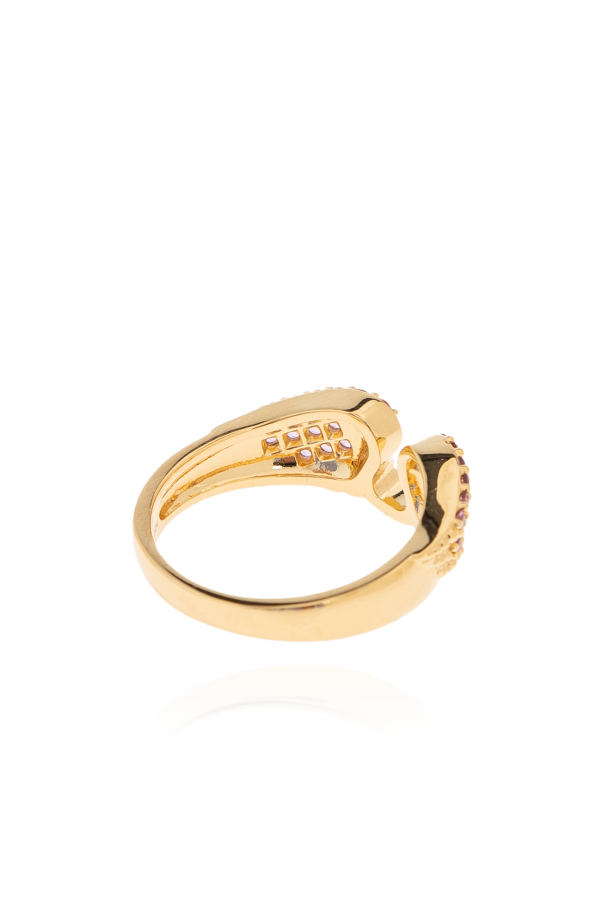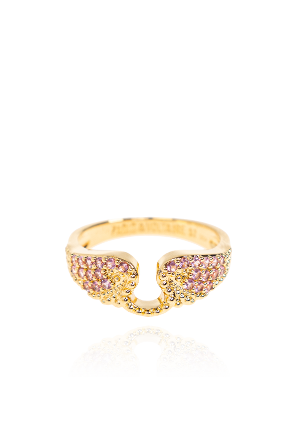 Introducing the Mosiężny Ring by Zadig & Voltaire—an exquisite embodiment of refined elegance and artistic flair. This gold-toned brass ring boasts an open design, with delicate pink-hued crystals adorning its ends. The design, reminiscent of wings, adds a touch of grace and subtlety, making it a timeless addition to any jewelry collection. The ring\'s smooth and lustrous surface accentuates its luxurious nature, reflecting the sophisticated ethos of its creators. Inspired by the unique vision of Swedish model and artistic director Cécilia Bönström, Zadig & Voltaire seamlessly blends Parisian street style with British whimsy, offering a piece that is both contemporary and classic. Why Choose This Product? Exquisite open-wing design with pink crystals Crafted from high-quality brass for durability Embodies a fusion of Parisian elegance and British charm Designed by the iconic brand Zadig & Voltaire
