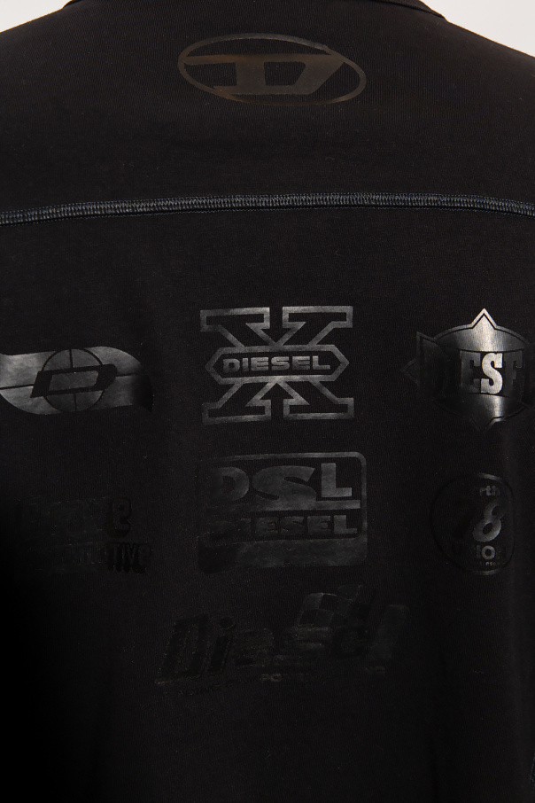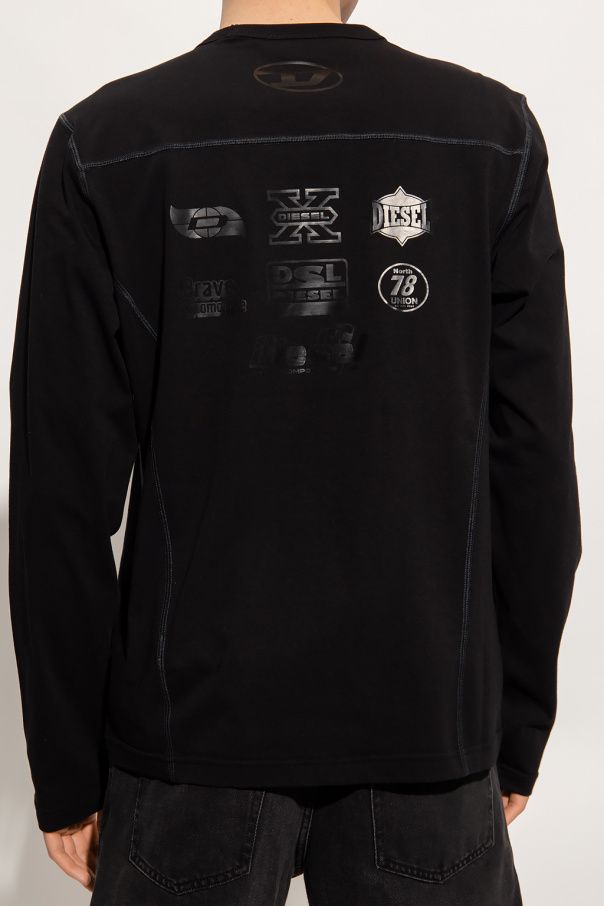 Black ‘T-Junka’ T-shirt from Diesel. Crafted from cotton, this style features a regular fit, long sleeves, diagonal seams an embroidered logo emblem on the front and rubberised logo print at the back.