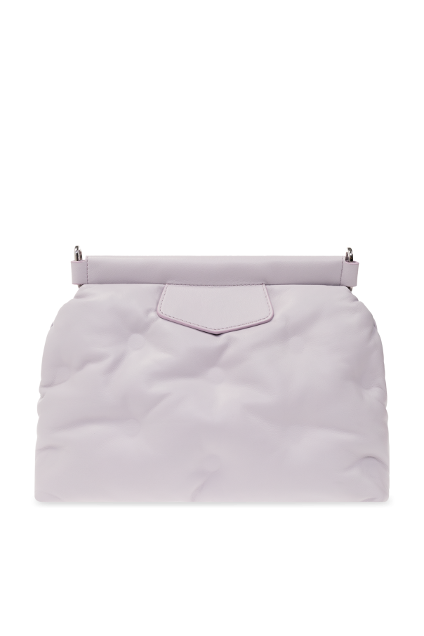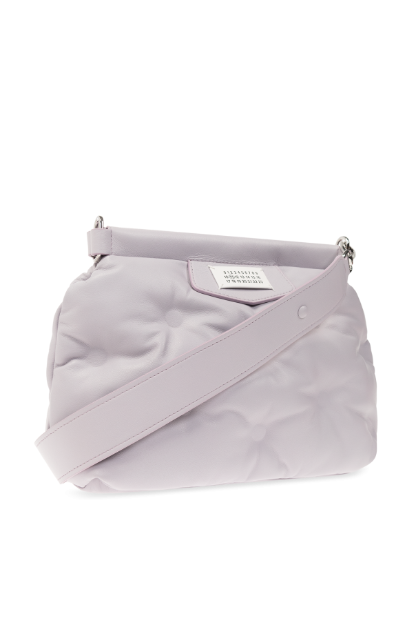 Light purple ‘Glam Slam Small’ shoulder bag from Maison Margiela. Crafted from leather, this design secures with a magnetic fastener and showcases the brand\'s signature white logo patch on the front. It is complete with an adjustable and detachable shoulder strap and one internal compartment with a zip pocket.