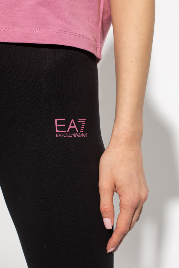Black leggings with an elastic waistband and a pink logo print from EA7 Emporio Armani.