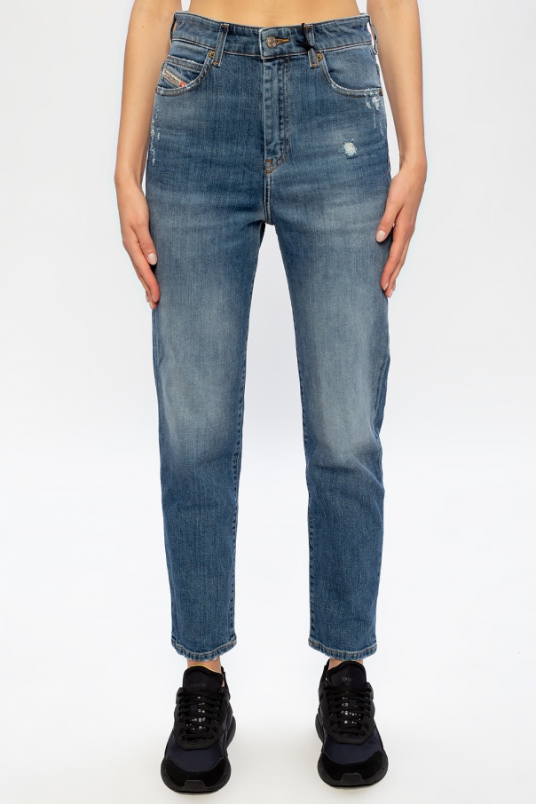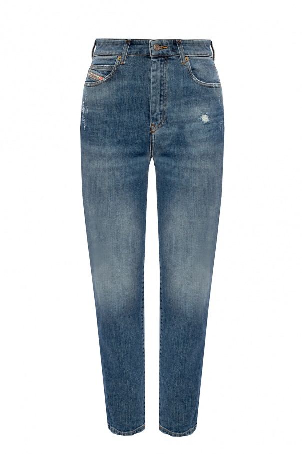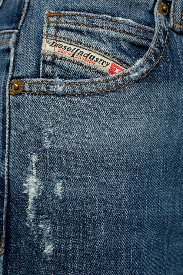 Blue ‘D-Eiselle’ jeans from Diesel. Crafted from stretch cotton into a high-waisted silhouette, this distressed pair comes with zip fly with top button closing and 5 pockets.