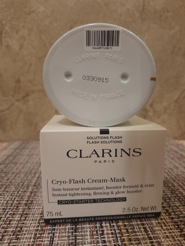 Clarins Cryo-Flash Cream-Mask - уникальный косметический продукт. Подтягивающая и укрепляющая маска «имитирует» процедуру криотерапии. Лечение холодом позволяет избавиться от многих проблем с кожей: высыпания, вялость, усталость, неоднородный цвет. В основе инновационной формулы — молекула MGA, полученная из ментола. Благодаря ей достигается мгновенный криоэффект.
