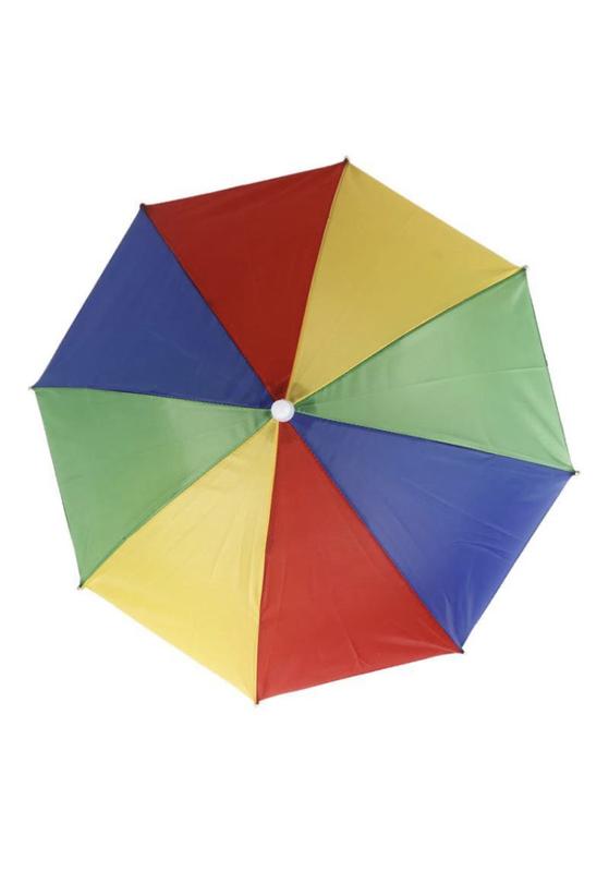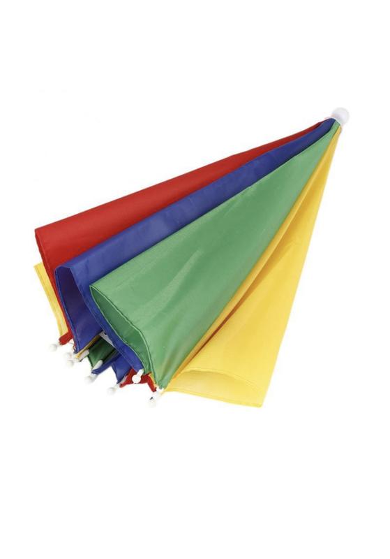 Зонт для головы выполнен из ткани полиэстер и прочных металлических спиц;