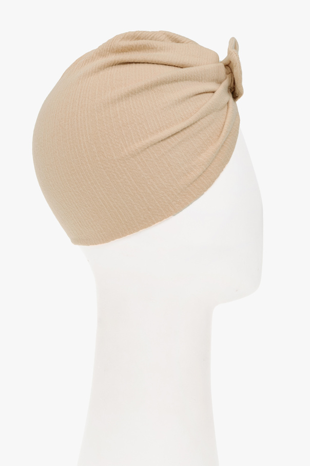 Cream and pinkish beige ‘Chleo Bambi’ hat two-pack from Konges Slojd. Crafted from organic cotton with the GOTS certificate, this style features a colourful hearts print and a decorative bow on the front.
