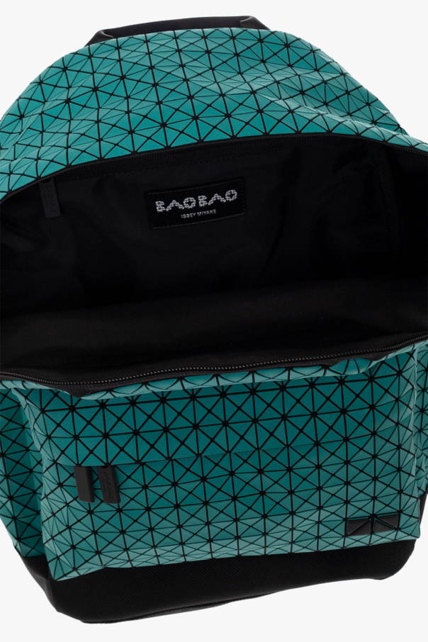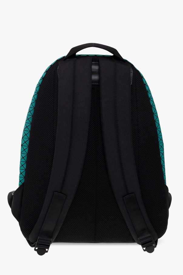 Black and blue ‘Daypack’ backpack from Issey Miyake Bao Bao. Crafted from cotton, this model fastens with a two-way zip and is decorated with a rubberized geometric pattern. It is complete with a front zip pocket, half-round handle, adjustable shoulder strap, black metal hardware and one internal compartment with one zip pocket.