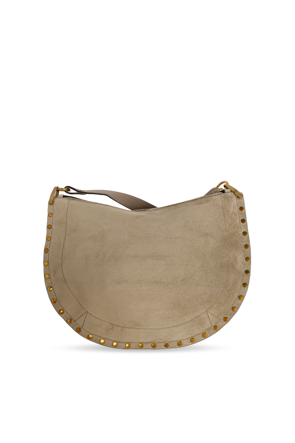 Introducing the exquisite Kanao Shoulder Bag by the illustrious designer Isabel Marant. This luxurious accessory is crafted from a suede-like exterior that beautifully emulates the texture of premium leather, complemented by a soft cotton lining. Its semi-circular shape is accentuated by elegant golden studs along the edges, epitomizing sophistication. Fashioned for versatility, the Kanao Bag features an adjustable strap, allowing you to carry it with ease, whether on the shoulder or across the body. The subtle designer logo embossed on the front speaks to understated elegance. Inside, discover a zippered pocket and an additional card slot, offering seamless organization. Why Choose This Product? Exquisite blend of style and practicality. Adjustable strap for versatile wear. Elegant golden stud embellishments. Secure zip closure with organized interior. Designed by renowned fashion icon Isabel Marant.