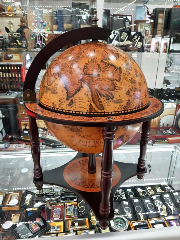 Діаметр глобуса 33 см загальна Висота 60 см Ширина загальна 42 см Матеріал: дерево, МДФ.