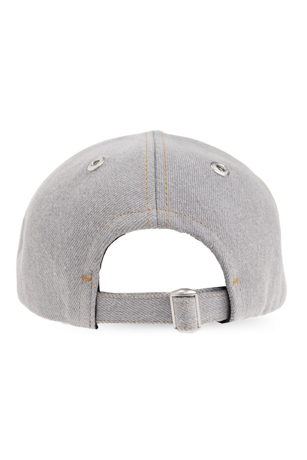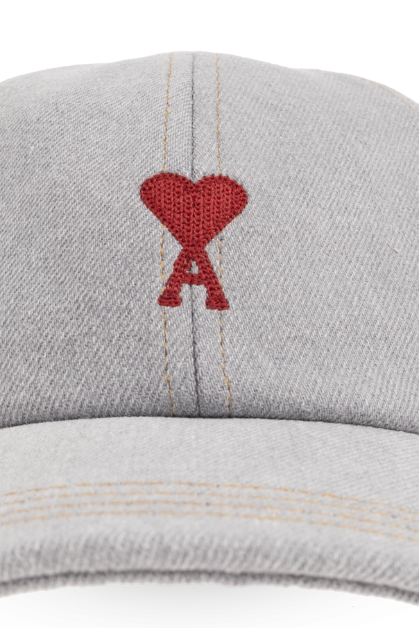 Grey denim baseball cap from Ami Alexandre Mattiussi. Fastened with an adjustable buckle strap at the back, this item is decorated with a red Ami de Coeur logo embroidery.