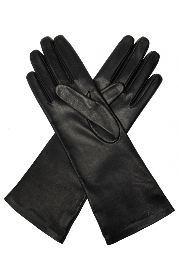 Black gloves from Saint Laurent. Crafted from lamb leather, this accessory comes with an embossed logo.