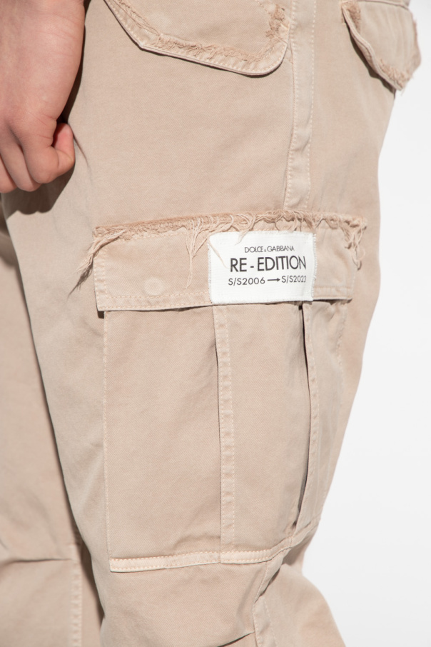 Beige sweatpants from Dolce & Gabbana, ‘RE-EDITION S/S 2006’ collection. Made of cotton, this design features zip and button fastening, multiple pockets, tapered legs and a vintage effect.