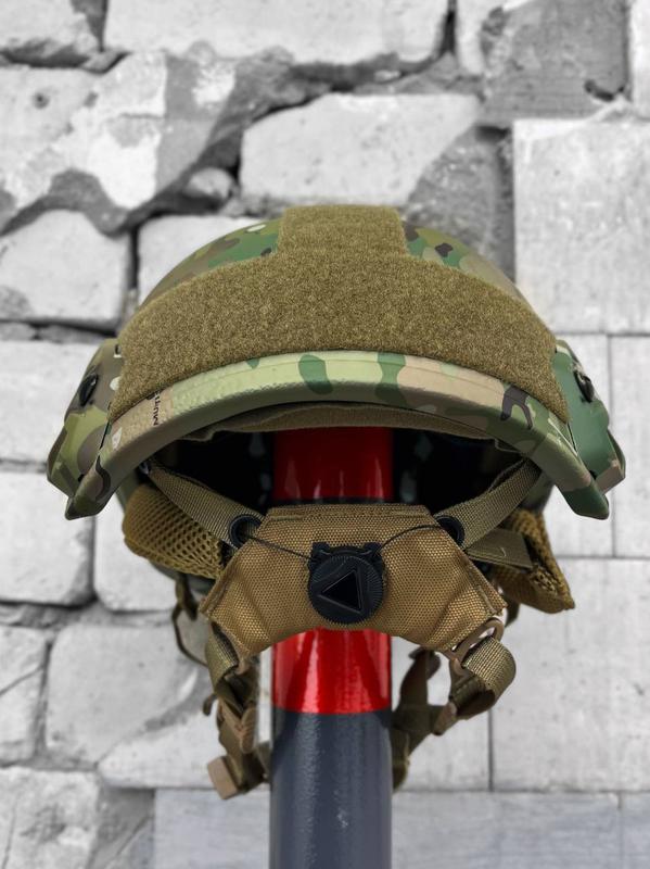 Шлем снабжен креплением для прибора ночного видения типа Norotos/SOPMOD NVG и боковыми рельсами для крепления фонарей, камер и других аксессуаров.