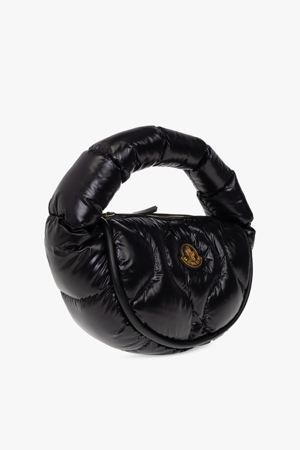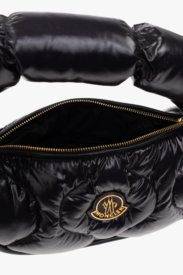 Black ‘Delilah’ quilted shoulder bag from Moncler. Crafted from fabric with natural down and feathers padding, this design fastens with a zip and showcases a logo patch on the front, a quilted shoulder strap, gold-tone metal hardware and one internal compartment with a slip pocket.