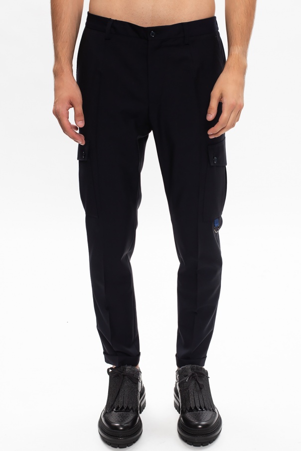 Navy trousers from Dolce & Gabbana. Crafted from wool, this design fastens with a zip and button and is complete with two button pockets on the sides and back as well as turn up cuffs.