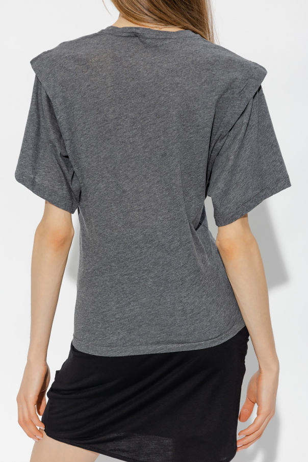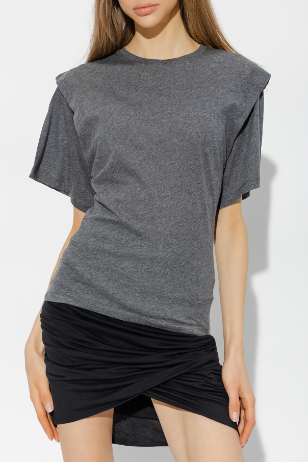 Dark grey ‘Fortuna’ crewneck T-shirt from Iro. Made of cotton, this style features an elasticated collar and short sleeves with an overlap.