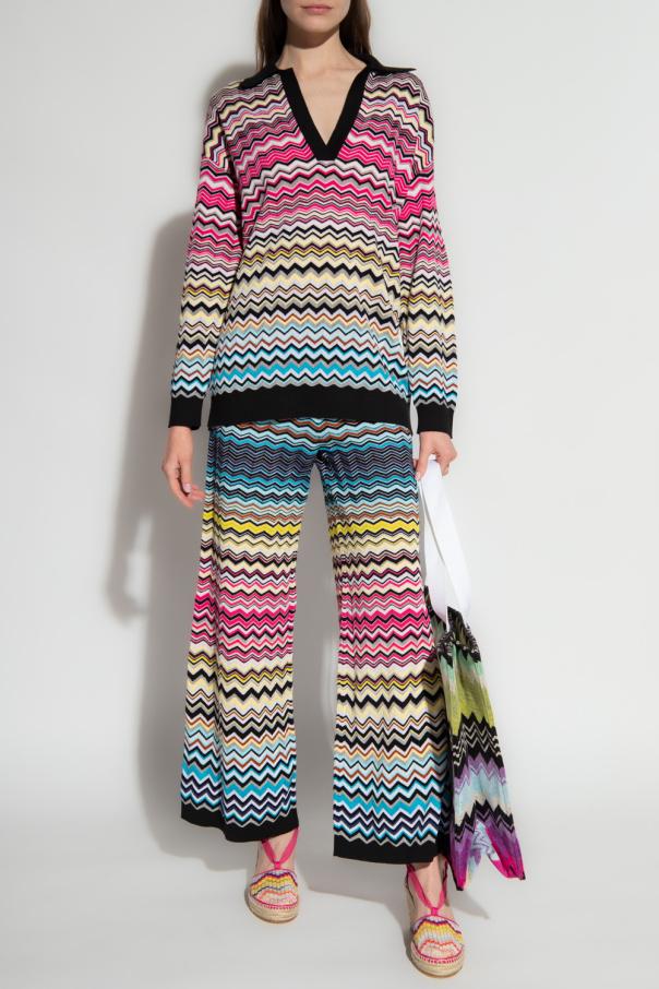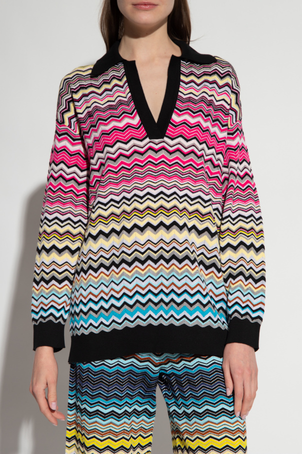 Multicolored top from Missoni. Made of cotton, this V-neck design features a geometric pattern and ribbed trims at the hem and cuffs.