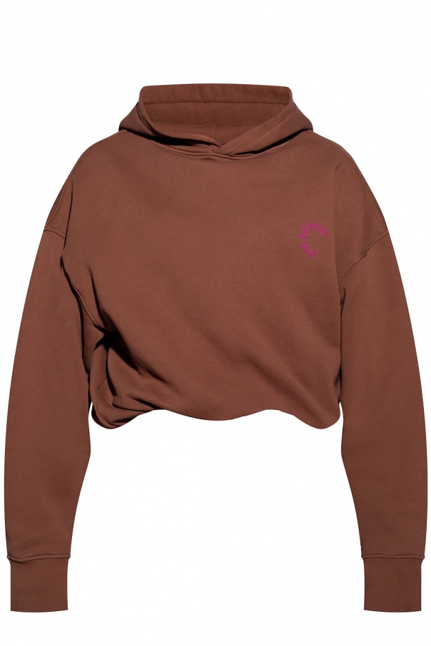 Brown hoodie from The Attico. Crafted from cotton, this style features a pink graphic print with the brand\'s logo on the front and long sleeves with elasticated cuffs.