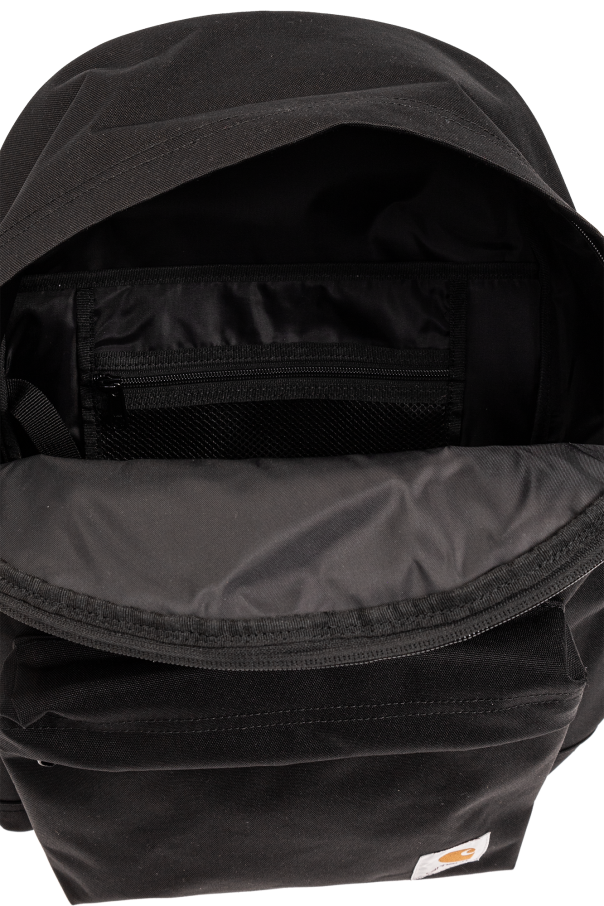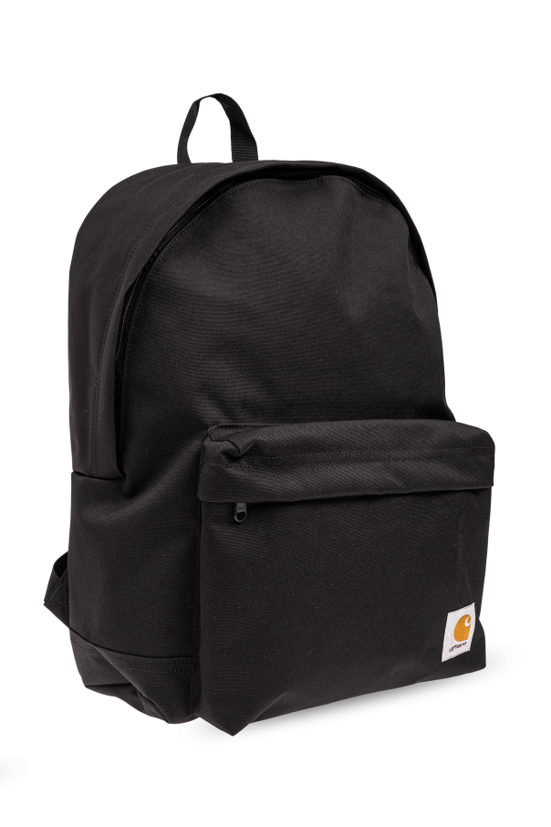 Black backpack from Carhartt. Made of fabric, this model features a two-way zip, the brand’s signature logo patch, zipped front pocket, half-round handle, adjustable shoulder straps and one internal compartment with one zip pocket, one slip pocket and a carabiner on a strap.