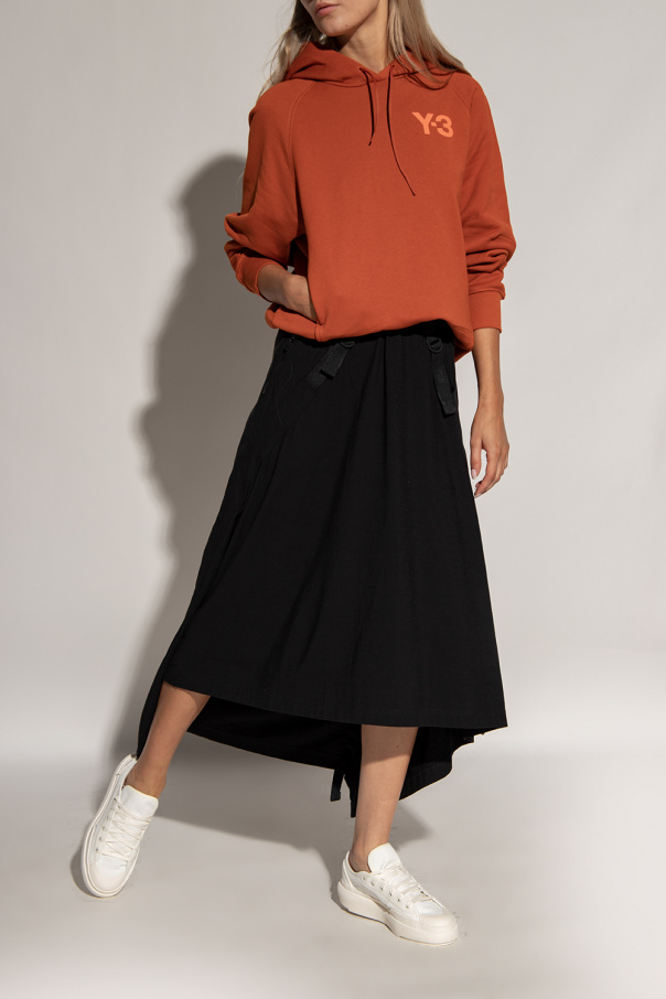 White ‘Ajatu Court’ sneakers from Y-3 Yohji Yamamoto. Crafted from leather and fabric, this lace-up model sits on a white rubber sole and showcases an embossed black logo at the back.