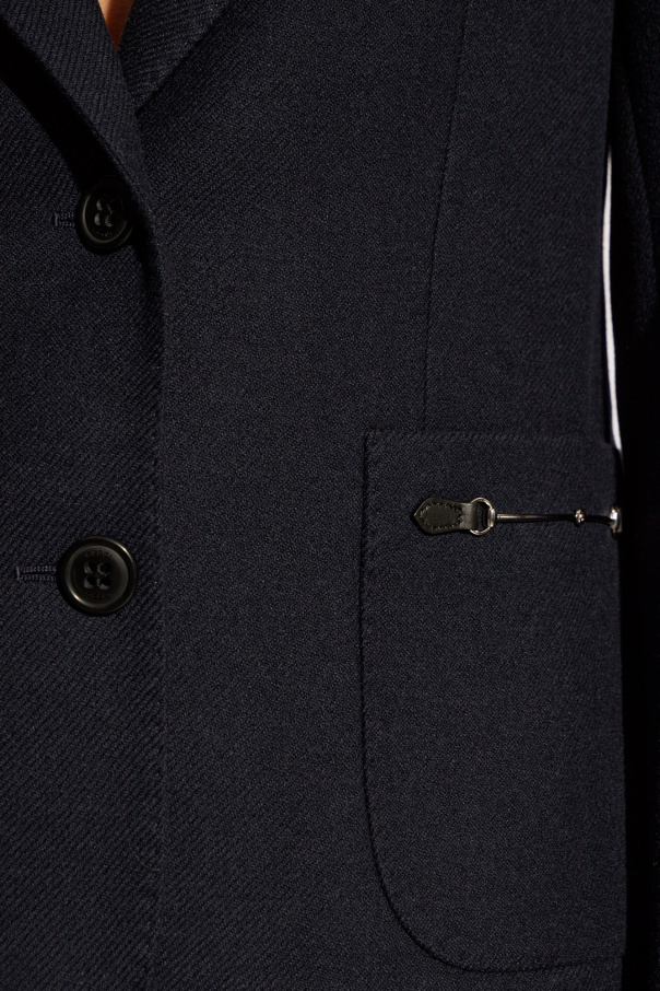 Navy blue bomber jacket from Gucci. Made from cashmere, this style is embellished with silver-tone horsebit hardware and features button fastenings, notch lapels, two slip pockets, long sleeves and a single back vent.
