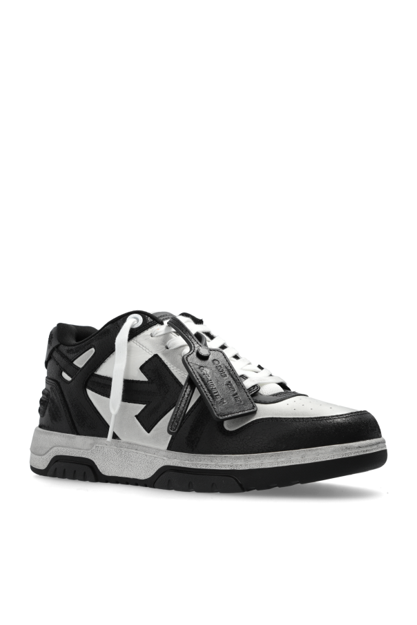 Introducing the exclusive ‘Out Of Office’ sneakers from the renowned designer Off-White. These low-top sneakers epitomize the perfect blend of contemporary street fashion and superior craftsmanship. The sneakers showcase a classic low-top silhouette with a robust, thick sole that exudes both style and functionality. The dominant black color is accentuated by striking white highlights, including the iconic arrow logo on the sides, a testament to Off-White\'s distinctive aesthetic. The sole is elegantly designed in gray with a black tread, ensuring both durability and traction. Crafted from premium leather and synthetic leather, these sneakers feature textile inserts for a modern touch. The interior is thoughtfully cushioned to provide maximum comfort. Additional details include the signature Off-White branding on the tongue and the chic white laces, complemented by a detachable black tag emblazoned with the Off-White logo. Why Choose This Product? Exclusive design by Virgil Abloh\'s Off-White, a brand synonymous with cutting-edge fashion. High-quality construction using premium leather and textile materials. Unique aesthetic with iconic Off-White arrow logo and signature details. Comfortable cushioned interior for all-day wear. Durable gray sole with black tread for enhanced traction.