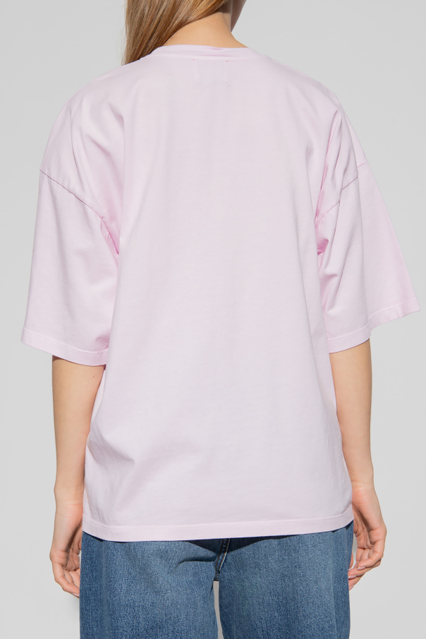 Pink oversize T-shirt from HALFBOY. Made of cotton, this garment features a ribbed crew neck and short sleeves with a white logo embroidery.