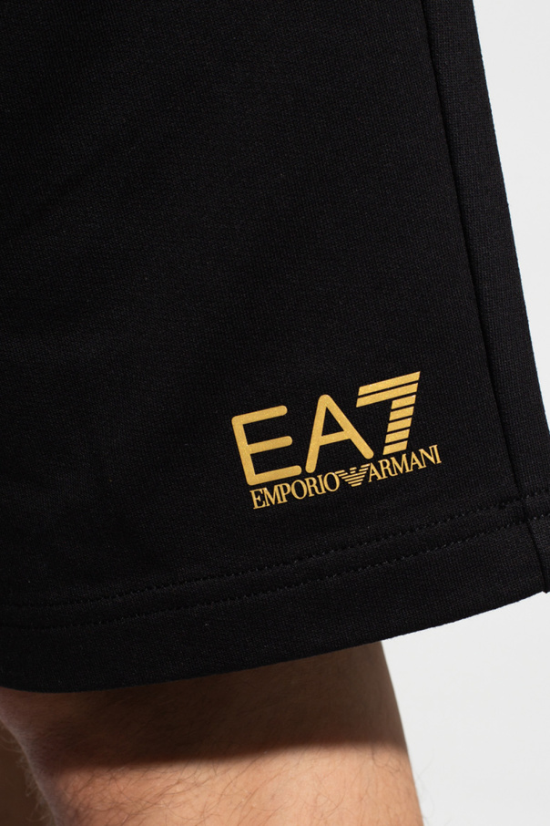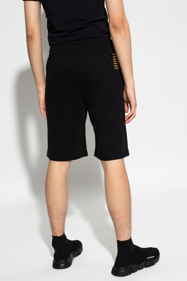 Black sweat shorts from EA7 Emporio Armani. Made of cotton, this pair features a drawcord-adjustable waist, two side seam pockets and a gold-tone graphic print with the brand\'s logo.