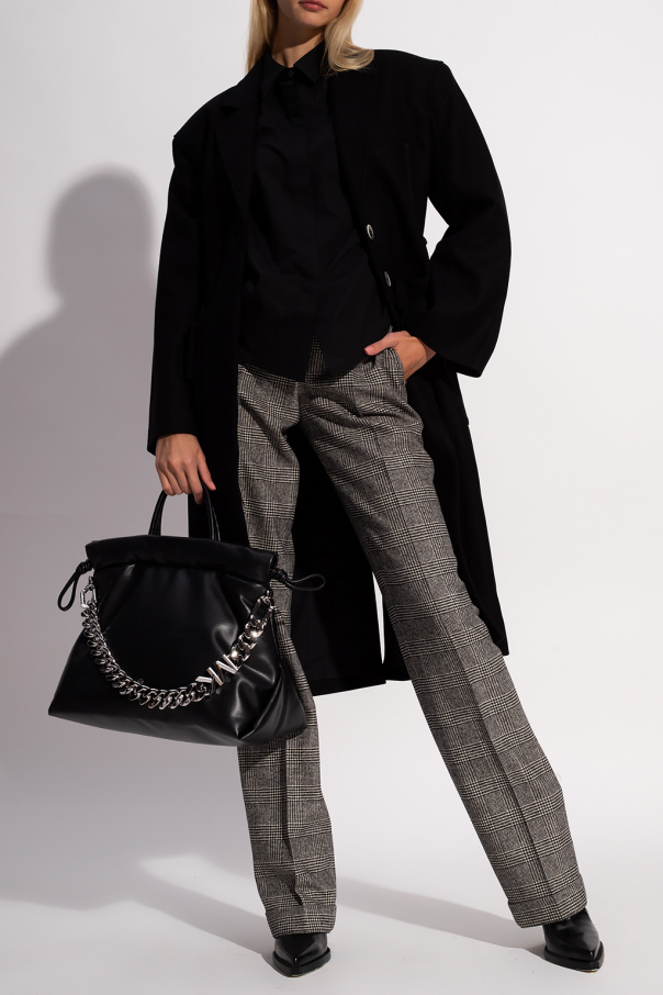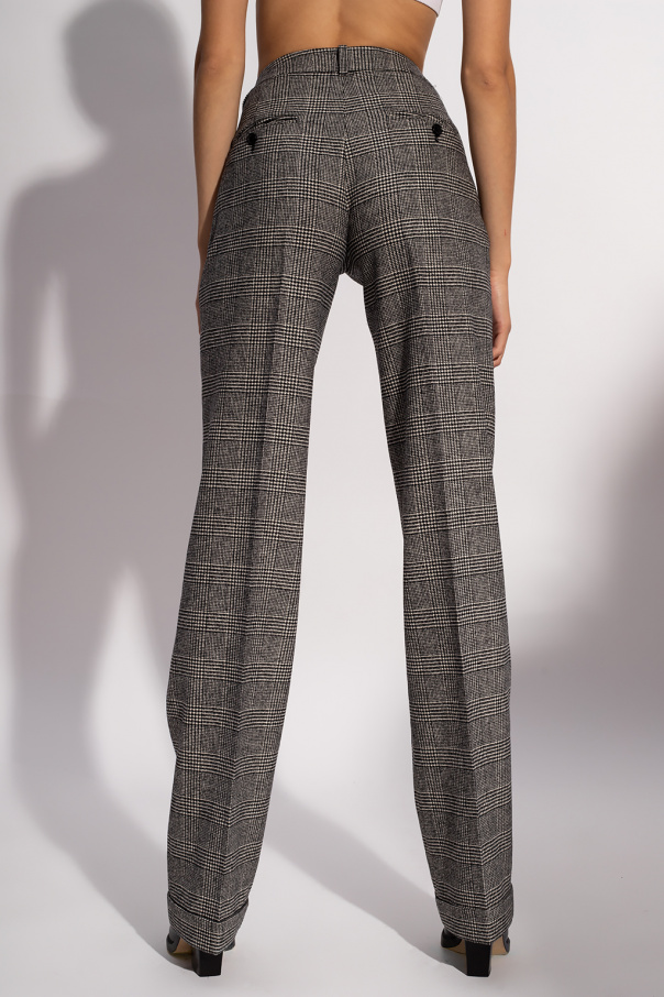 White and black pleat-front trousers from Michael Kors. Made of wool, this pair falls down with slightly tapered legs and is complete with zip, hook and button fastening, two slip pockets and two buttoned pockets.