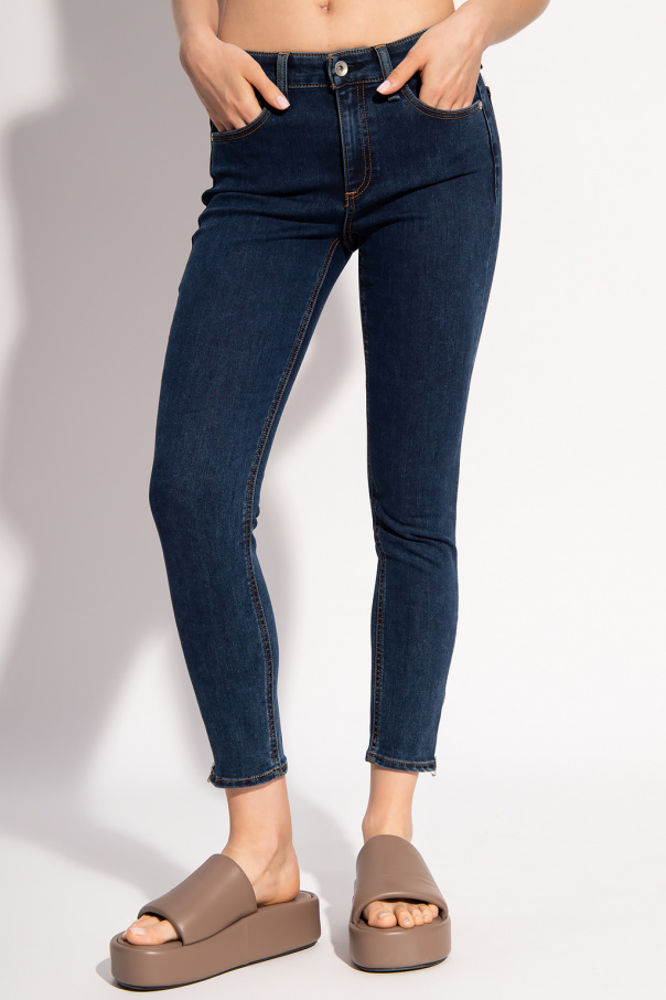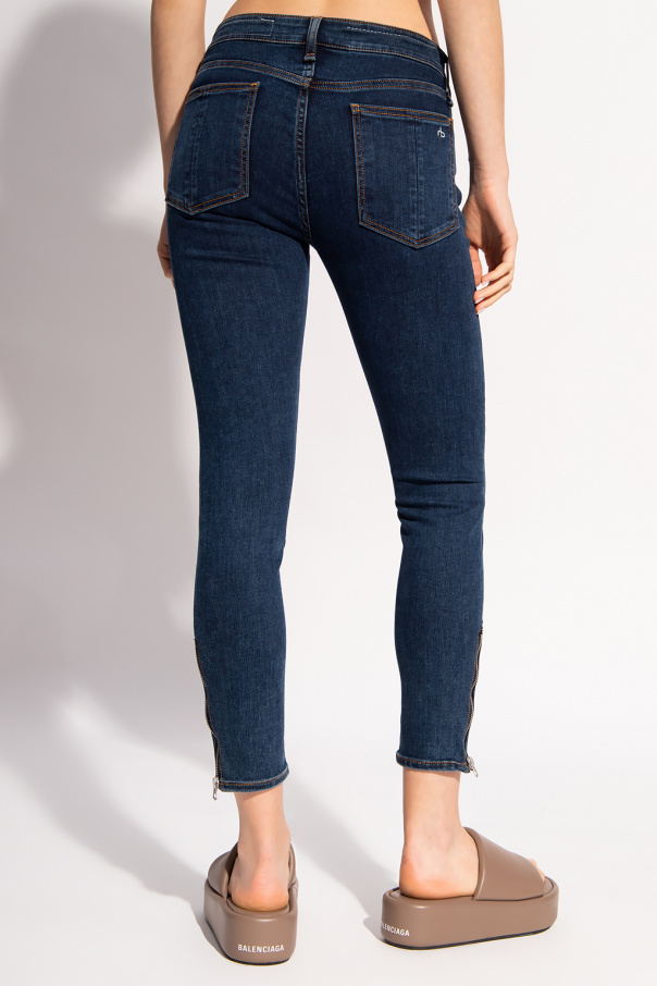 Navy ‘Cate’ skinny jeans from Rag & Bone. Fastened with buttons and a zip fly, this pair features two front and two back pockets, a regular waist and silver-tone zips at the cuffs.