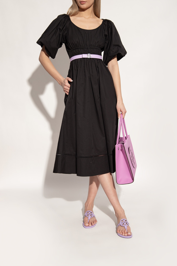 Light purple ‘Miller’ patent slides from Tory Burch. Made of patent leather, this pair features a logo detail and light purple rubber sole.