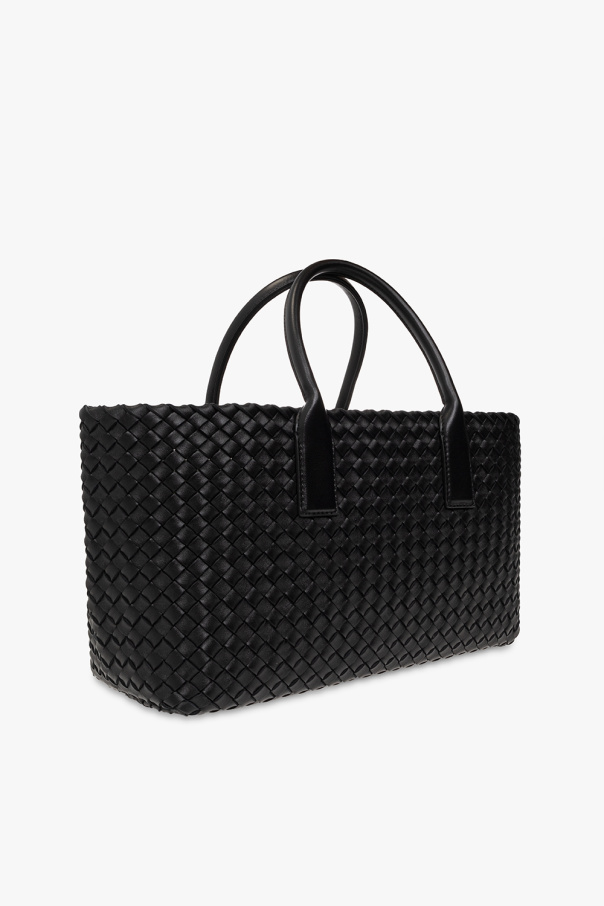 Black \'Cabat Small’ shopper bag from Bottega Veneta. Crafted from lamb leather with the brand\'s iconic ‘Intrecciato’ weave, this item design features one internal compartment.