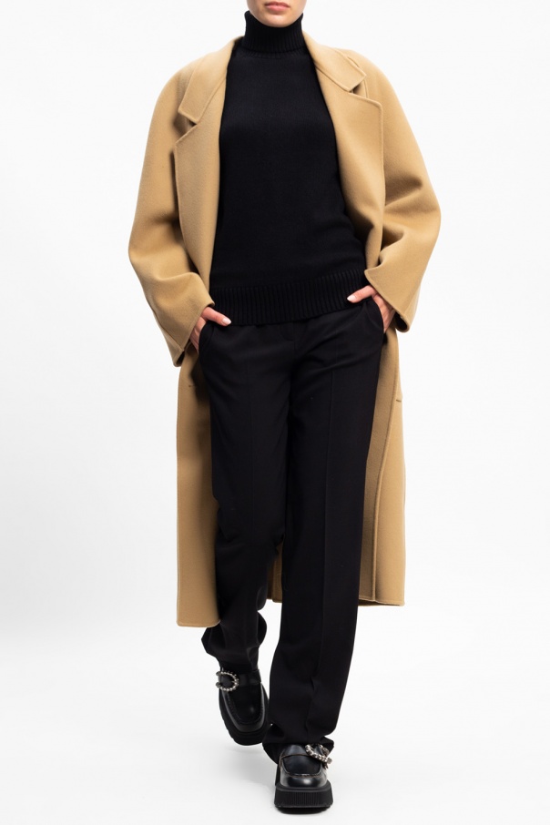 Black ribbed turtleneck sweater from Michael Kors. Crafted from cashmere, this design is complete with ribbed trims at the hem and cuffs.