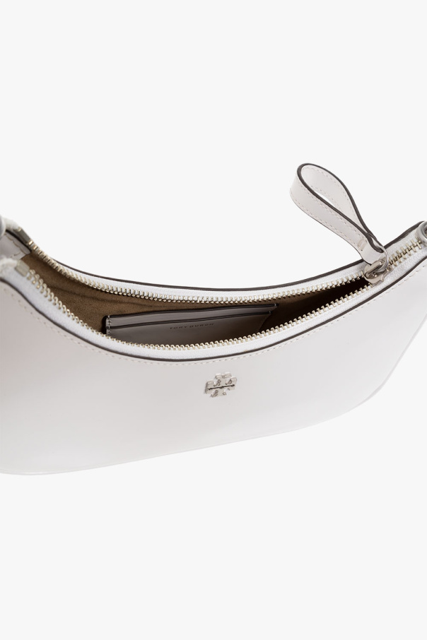 White ‘Mercer Small’ shoulder bag from Tory Burch. Crated from leather, this design fastens with a zip and showcases logo hardware on the front. It is complete with a detachable beige shoulder strap, metal chain, silver-tone metal elements and one internal compartment with two card slots.