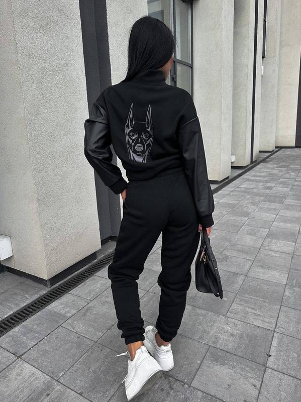 М'які шкіряні рукава і наша фірмова вишивка срібною ниттю у вигляді добермана😍Стан: НовийКолір:- Чорний