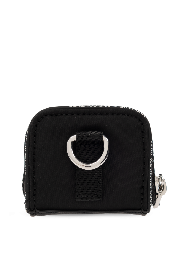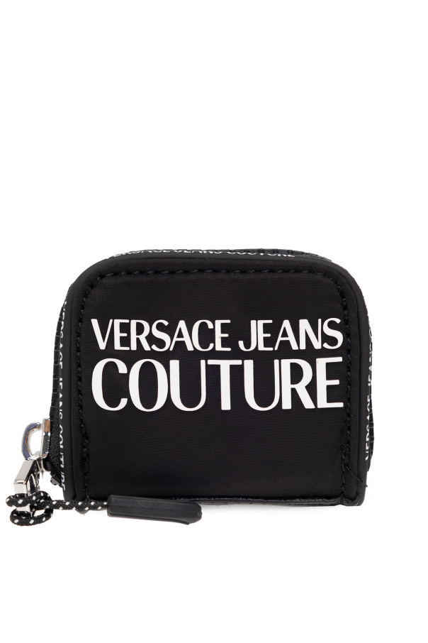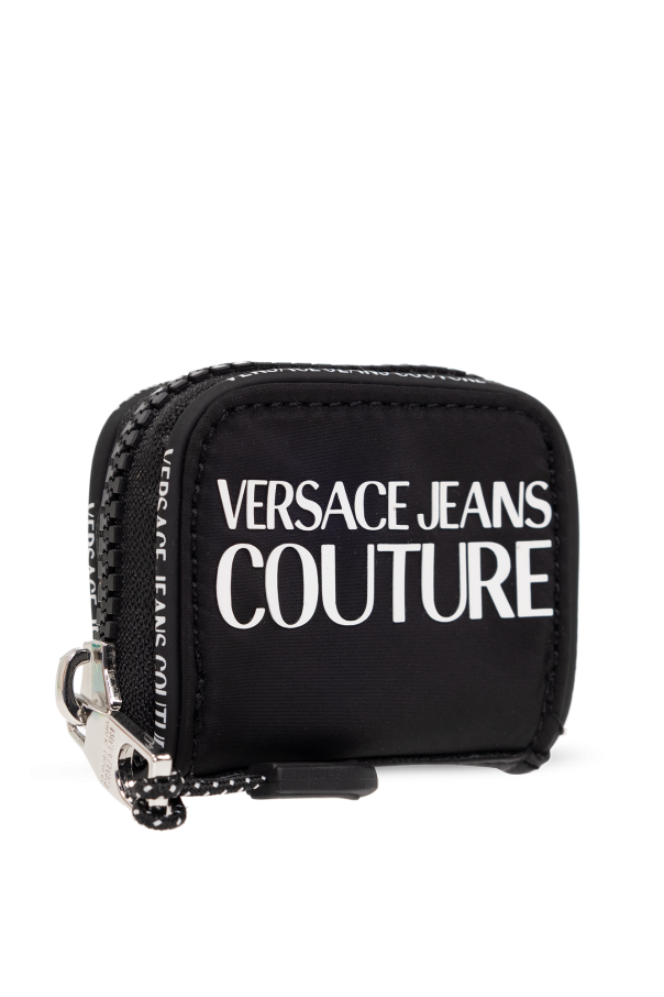 Black AirPods case from Versace Jeans Couture. Fastened with a zip, this item features a rubber logo in white, one internal compartment and a detachable strap.